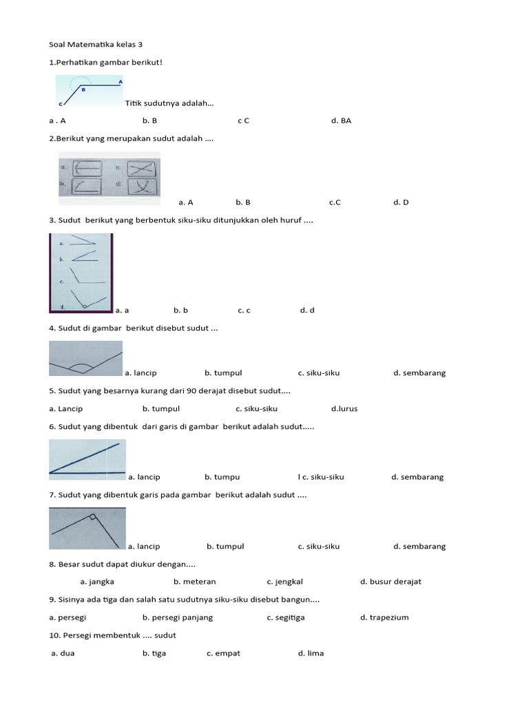 Memahami gambar soal sudut di kelas 3 SD adalah tentang membangun fondasi visual dan konseptual yang kuat. Dengan mengenali jenis-jenis sudut (lancip, siku-siku, tumpul) dan melatih kemampuan identifikasi mereka melalui berbagai gambar, siswa akan mulai melihat dunia dengan cara yang baru. Penggunaan alat bantu, permainan edukatif, dan menghubungkan konsep dengan kehidupan sehari-hari akan membuat proses belajar menjadi lebih efektif dan menyenangkan. Ingatlah, setiap sudut yang dipelajari adalah langkah maju dalam petualangan matematika mereka.